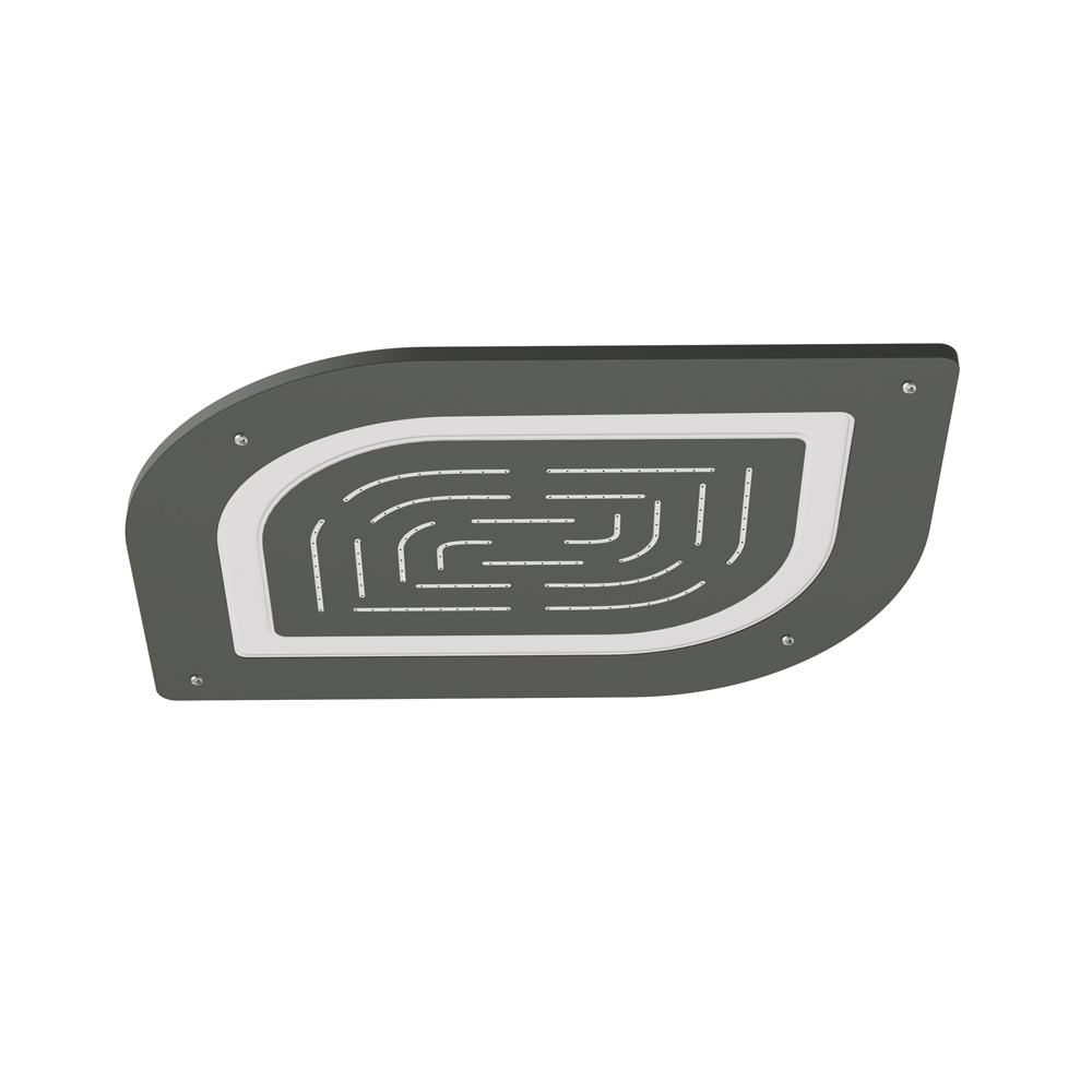 Alive- Maze Prime Single Function Shower 450 X 350mm AISI 304 stainless steel with RGB LED light remote control & installation kit for false ceiling ▪ Chromo therapy (RGB): LED x 0.23W with 12V Power Supply (SMPS) Including Controller, connecting to AC 100-240V, 50-60Hz